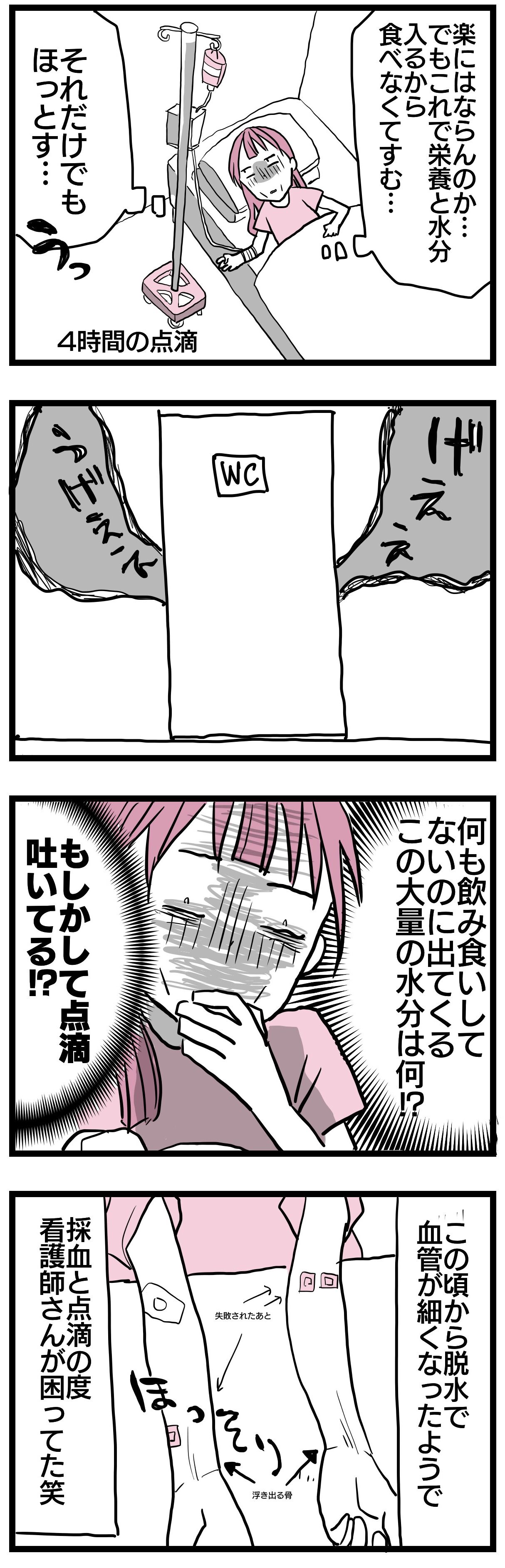 大量の水分を吐いて「あれ!?コレ点滴口から出てない!?大丈夫!?」 って