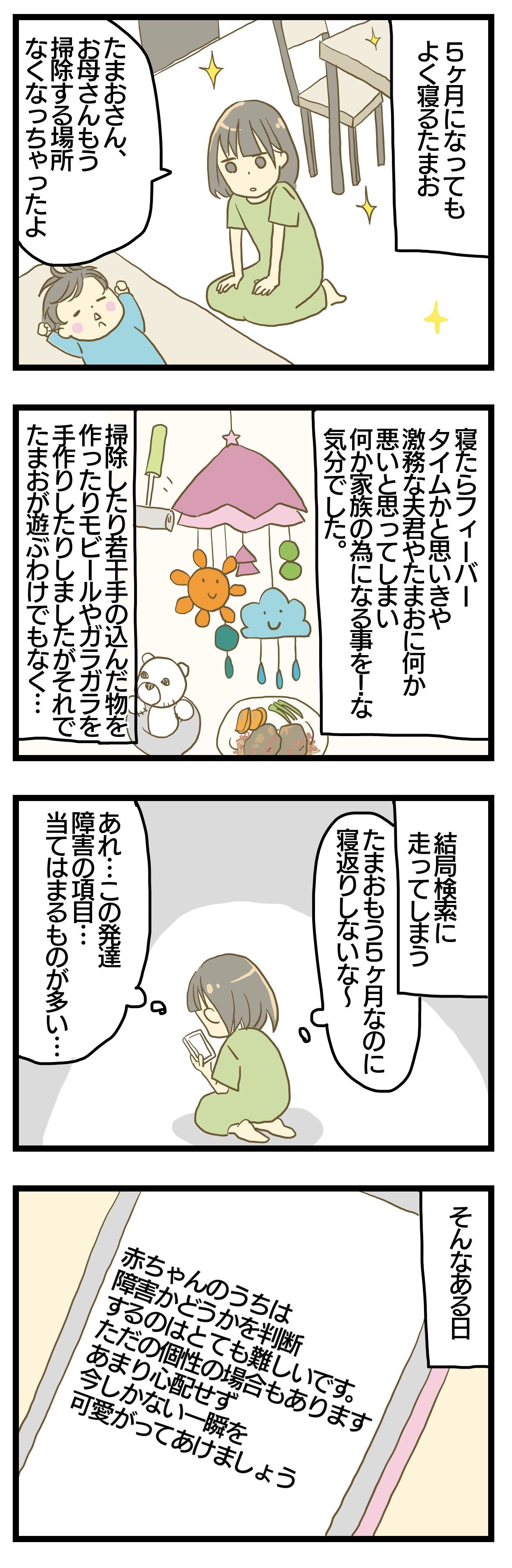 寝る赤ちゃん④ 2021年11月10日 たまおが寝てる間なんだか申し訳なくて(今なら何がなのですが笑)やたら掃除したりハンバーグ(私が出来る中で1番面倒くさい料理)つくったりしてました。たまおが見えないとこには行きたくなかったのでトイレ掃除、お風呂掃除とかはしなかったですけど笑リビングだけ毎日クイックルかけたり。今は漫画描く方が楽しくて掃除も料理もサボりまくり手抜きまくりですが笑あの時よりずっと楽しいです!寝る赤ちゃんこれにて完!妊娠悪阻で生き地獄な妊娠話はこちら 母乳ミルク問題はこちら 寝る赤ちゃんはこちら 「育児絵日記」カテゴリの最新記事 タグ :#育児絵日記#絵日記#寝る赤ちゃん#ネントレ < 前の記事次の記事 >