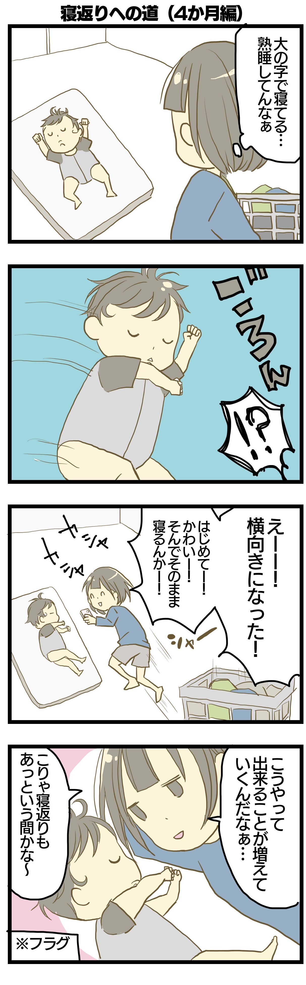寝返りへの道(3ヶ月、4ヶ月) 2021年11月21日 寝返りまでの記録ぶっちゃけるとなかなかしなかったです😭 赤ちゃんの成長ペースは人それぞれですよね!妊娠悪阻で生き地獄な妊娠話はこちら 母乳ミルク問題はこちら 寝る赤ちゃんはこちら 「育児絵日記」カテゴリの最新記事 タグ :#育児絵日記#漫画#エッセイ漫画#日常#寝返り < 前の記事次の記事 >