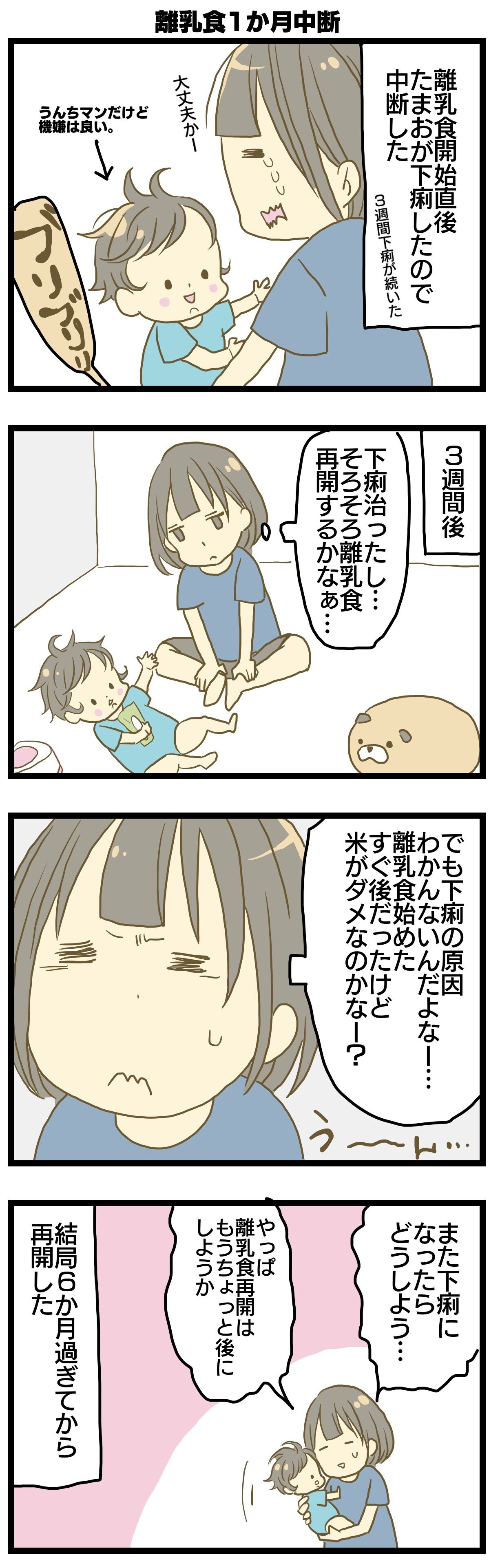離乳食② 2021年11月25日 原因不明ですが離乳食はじめて3日目くらいで下痢になってめっちゃ心配しました。離乳食再開するのが怖くて結局6ヶ月過ぎてから再開しましたね。下痢の記録もまた描けたらいいな。妊娠悪阻で生き地獄な妊娠話はこちら 母乳ミルク問題はこちら 寝る赤ちゃんはこちら 「育児絵日記」カテゴリの最新記事 タグ :#育児絵日記#漫画#実録漫画#コミックエッセイ#離乳食 < 前の記事次の記事 >