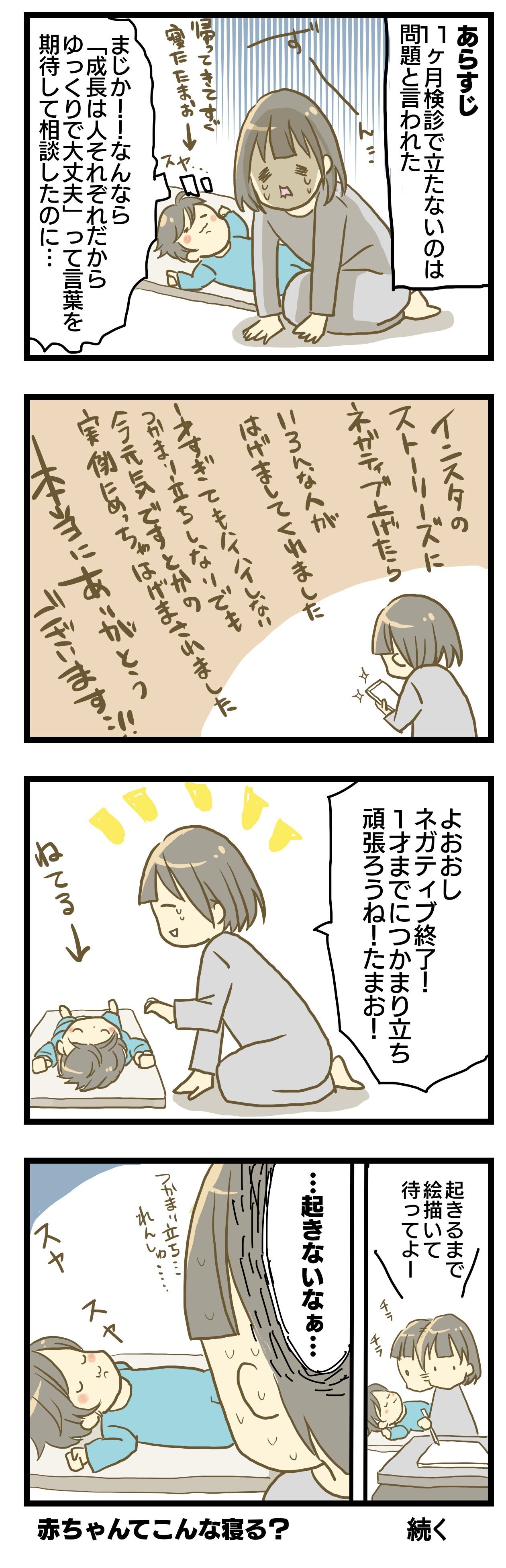 つかまり立ちしない話② 2022年01月03日 11ヶ月検診の時に寝すぎな事も相談すれば良かったです🥲よく寝てくれるので育てやすくはあるんですが心配になるんです😭周りの赤ちゃんがお昼寝時間短くなっていく中相変わらず朝寝、昼寝、夜寝をするたまお。贅沢な悩みかもですが…心配 です。あとうちの子もつかまり立ち遅かったけど今元気だよーとかの実例はとっても勇気をいただけました!!コロナ禍ワンオペ中 はネットが本当にありがたい😭💕 「育児絵日記」カテゴリの最新記事 タグ :#育児絵日記#漫画#実録漫画#コミックエッセイ#日常#11ヶ月検診#つかまり立ち < 前の記事次の記事 >