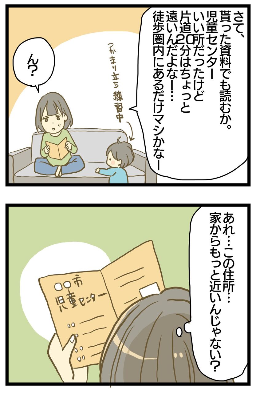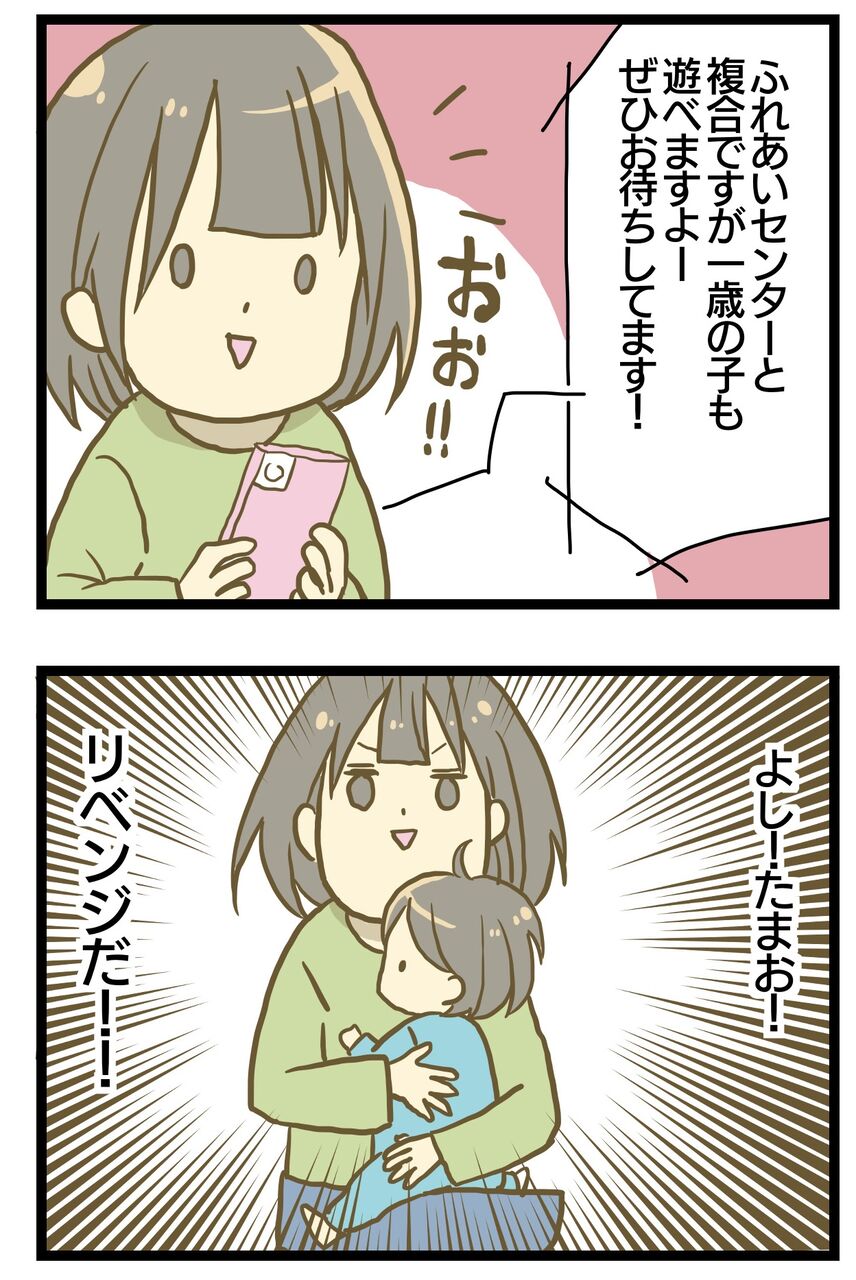 児童センターに行こう⑤ 2022年04月09日 最初から読む方はこちら 前のお話はこちら ということでいただいた冊子を見て家からもっと近い児童センターを発見しました!!ので次回2箇所目でリベンジします!次のお話はこちら 妊娠悪阻で生き地獄な妊娠話はこちら 母乳ミルク問題はこちら 寝る赤ちゃんはこちら ワンオペ育児で夫と喧嘩した話はこちら 義実家帰省愚痴日記はこちら たまおのつかまり立ち奮闘記 ワンオペ育児の通院話はこちら 夫婦喧嘩の記録はこちら 「育児絵日記」カテゴリの最新記事 タグ :#育児絵日記#漫画#実録漫画#コミックエッセイ#児童センター#お出かけ < 前の記事次の記事 >