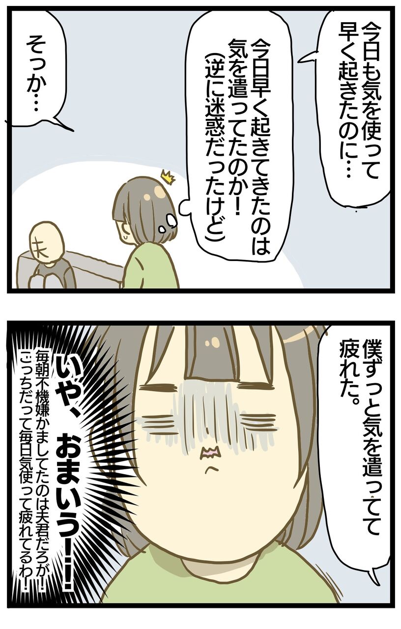 私が求める気の使い方ではなかったですし「いやいや、毎朝気を遣ってたのはこっちだわ!!」