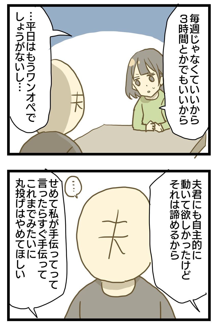 「手伝ってと言ったら手伝ってもらう」は要求しました。
