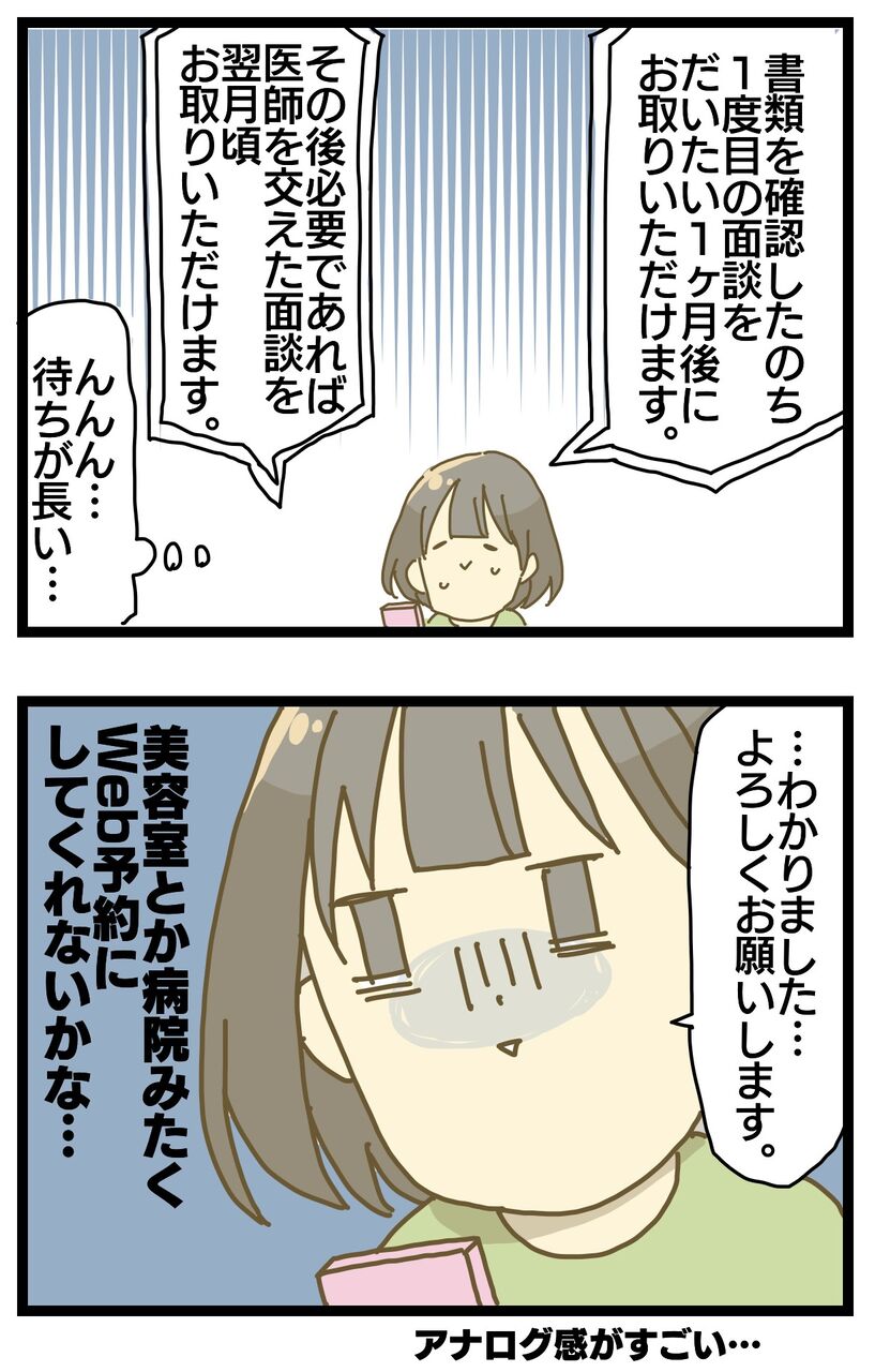 あとある程度覚悟はしてましたが面談の予約が取れるまで