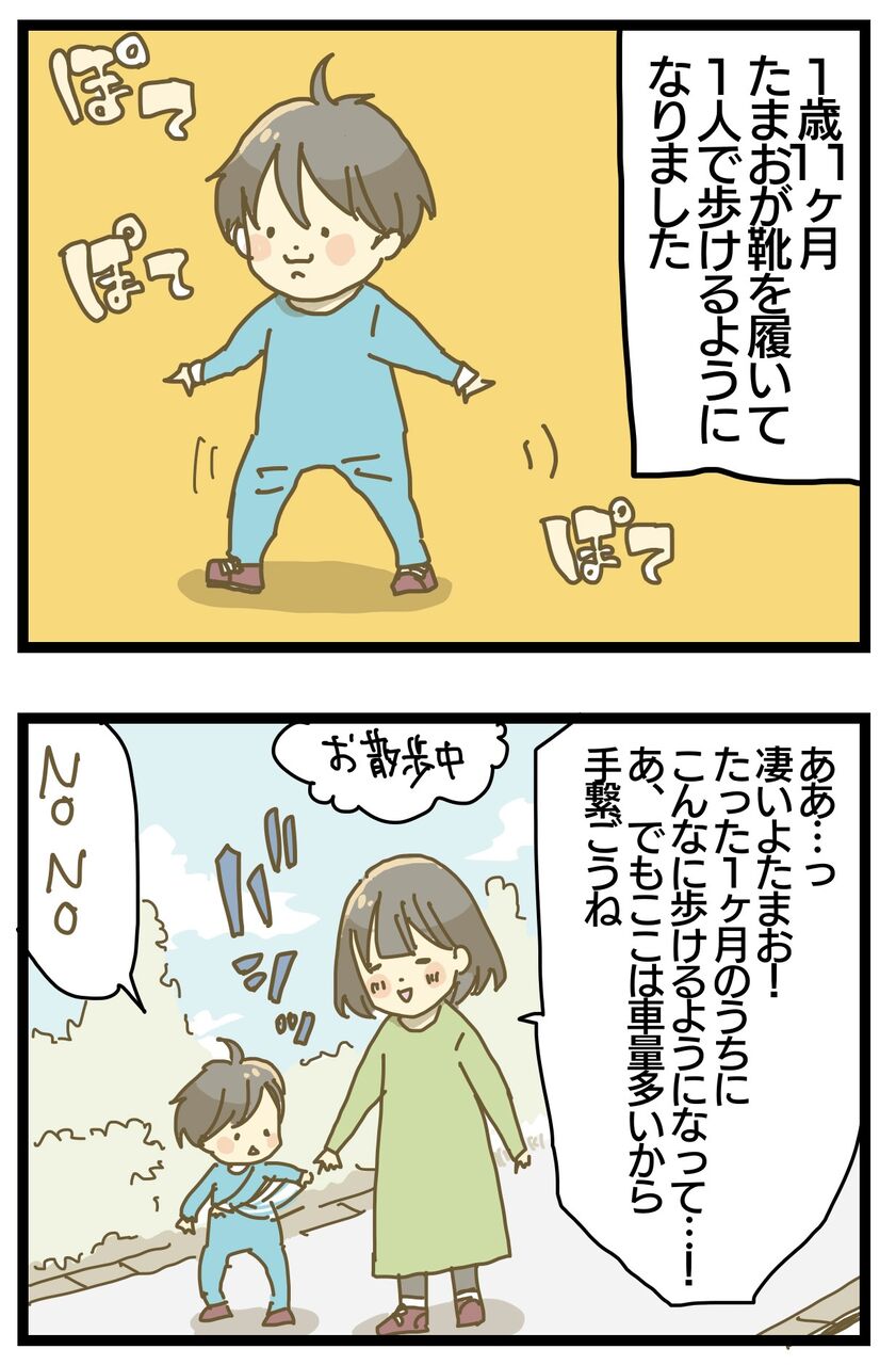 つい先日までお外だとまだ手を離して歩かなかったのに