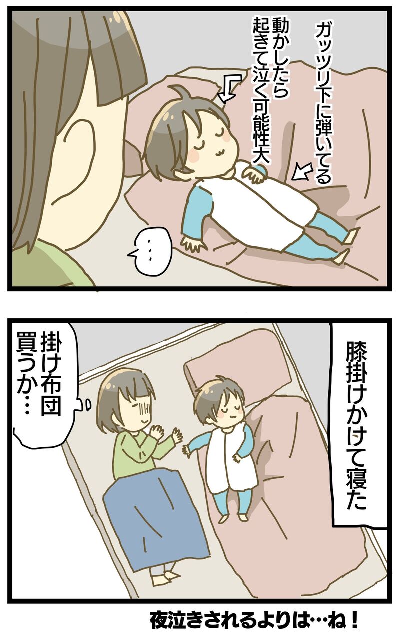 添い寝の話 2023年02月02日 下手に動かしたら夜泣きコースなので動かせない😂たまおは寝相めっちゃ悪いので夜はスリーパーだけで寒いときは暖房つけてるのでそこまで寒くはないんですけど個人的に何か被ってないと落ち着かないので布団…買うかな…と思っている今日この頃です。花王 めぐりズム 蒸気でホットアイマスク ラベンダー 12枚【3個セット】花王株式会社 「育児絵日記」カテゴリの最新記事 タグ :#育児絵日記#漫画#実録漫画#コミックエッセイ#日常#2歳 < 前の記事次の記事 >