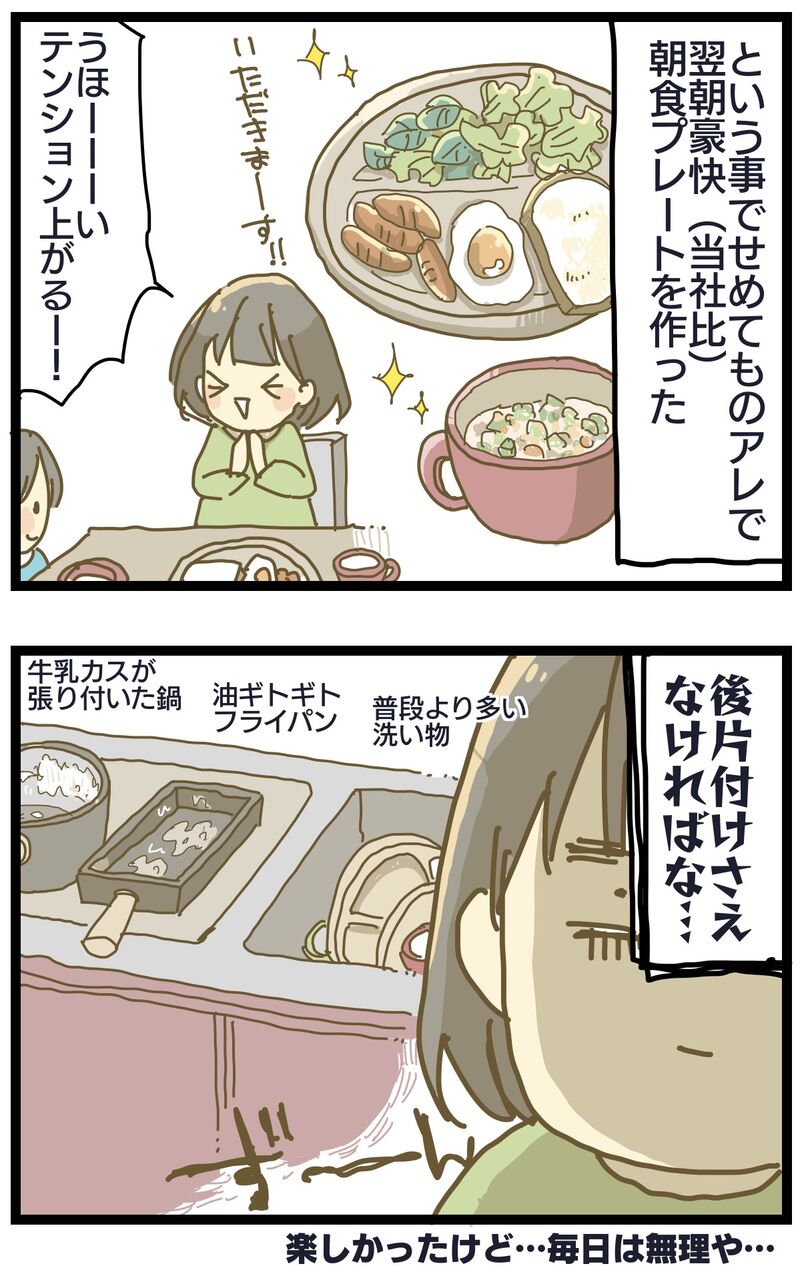 普段朝は食パン約一枚(たまおの食べ残し)を食べるだけが多いんですがこの時は