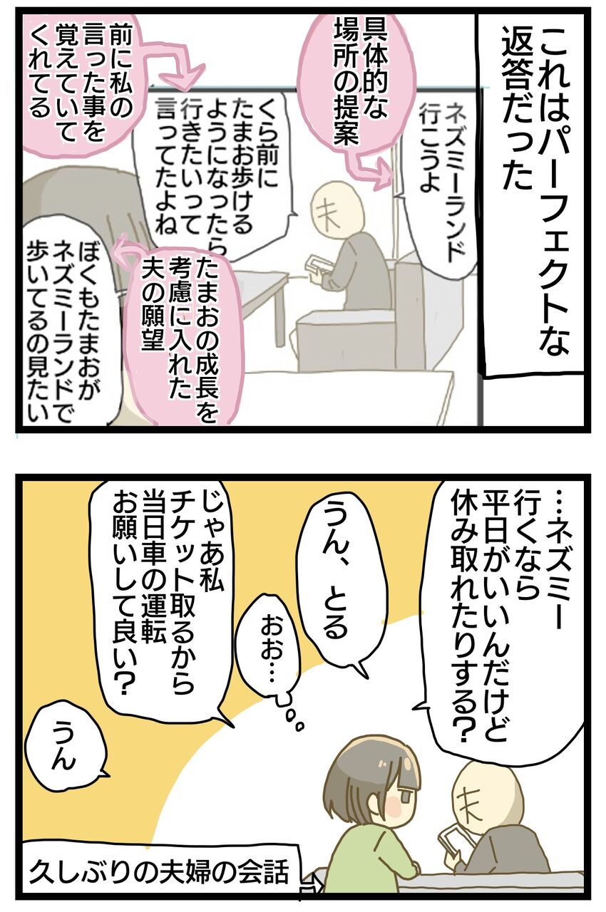21万円分の我慢と家事育児㊲ 2023年08月30日 最初から読む方はこちら 前のお話はこちら ここが分岐点だったと思います。夫が私の質問に対して「どこでもいい」とか「くらに任せる」とか言っていたら夫婦関係改善の道はなかったかなと。フィクション交えて描いていきます。【まとめ買い】ホーマー 紅茶専門店用 ロイヤルミルクティー ベース(無糖) 500ml 紙パック×2本ホーマーコーポレーション妊娠悪阻で生き地獄な妊娠話はこちら 母乳ミルク問題はこちら 寝る赤ちゃんはこちら たまおのつかまり立ち奮闘記 ワンオペ育児の通院話はこちら 妊娠と仕事の葛藤はこちら 「夫婦」カテゴリの最新記事 タグ :#育児絵日記#漫画#実録漫画#コミックエッセイ#日常#1歳#夫婦#夫婦喧嘩 < 前の記事次の記事 >
