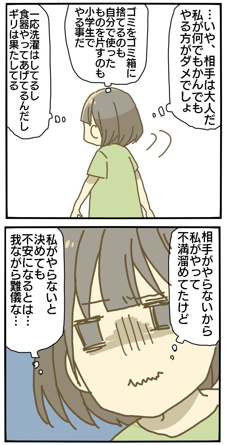 夫に頼れない妻㉝ 2024年03月15日 最初から読む方はコチラ 前回のお話はコチラ 今までやっていてあげていた事をやらなくすると罪悪感が…これぐらいならやってあげた方がいいんじゃないか…?と思ったりでも私がやってもどうせまた「何で私ばっかり」って不満に思う未来が見えるので笑夫のお世話は最低限を心がけてます。次回最終回の予定です!続きますフィクション交えて描いていきます。【まとめ買い】ホーマー 紅茶専門店用 ロイヤルミルクティー ベース(無糖) 500ml 紙パック×2本ホーマーコーポレーション妊娠悪阻で生き地獄な妊娠話はこちら 母乳ミルク問題はこちら たまおのつかまり立ち奮闘記 妊娠と仕事の葛藤はこちら 「夫婦」カテゴリの最新記事 タグ :#育児絵日記#漫画#実録漫画#コミックエッセイ#日常#夫婦#夫婦喧嘩#2歳 < 前の記事次の記事 >