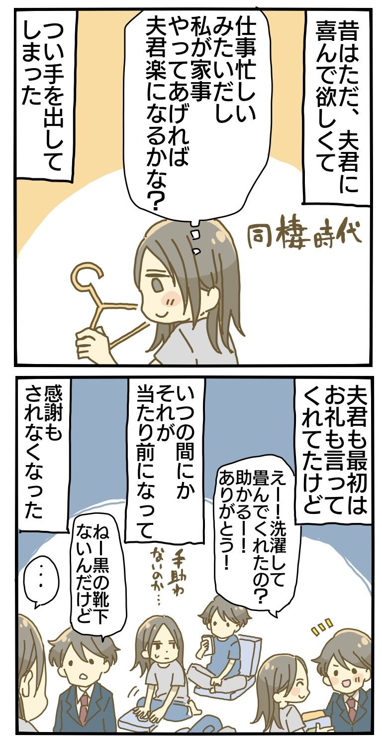 夫君の分の家事まで担当しちゃったんですよね。