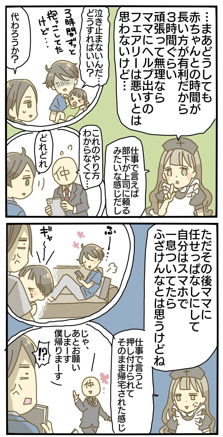 いやいや、あやすの代わった分
