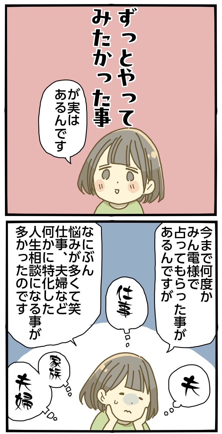 今までも仕事や夫婦、家族関係など特化した悩みを占ってもらいましたが