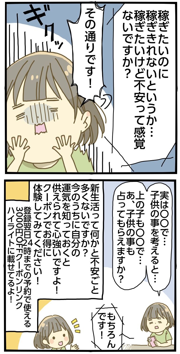 ハイライトに 登録翌日24時までの予約・鑑定で使用できる3000円OFFクーポンのリンクあるので是非使って下さいませ!