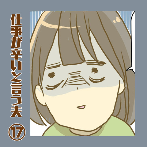 仕事が辛いと言う夫⑱ 最初から読む方はこちら 前のお話はこちら とりあえずあのまま無言でいても、わたしがまたひたすら文句言っても、何の解決にもならないなと思ったので夫君には自分の部屋に行ってもらいました。あと当時はあまり気付いていませんでしたが今思うと私がイライラしてた理由は睡 ... 2022年05月17日 続きを読む